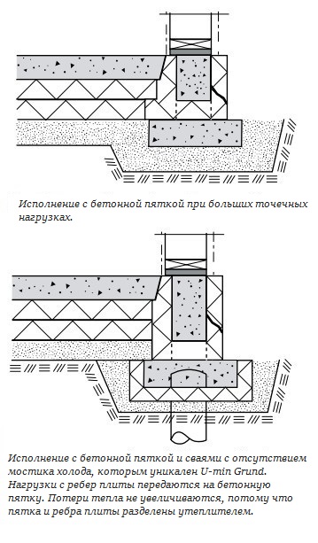 Несущая часть фундамента рассчитывается конструкторами , как обычная лента, и может быть использована для тяжелых домов при соответствующем нагрузкам нижнем слое ЭППС.